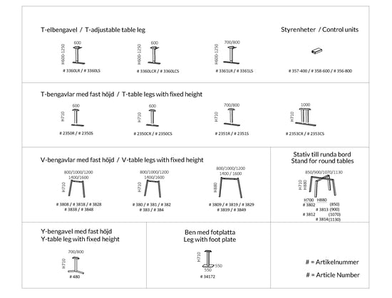 - Bordsskiva: 22 mm tjock, belagd med laminat, träfanér eller desktoplinoleum